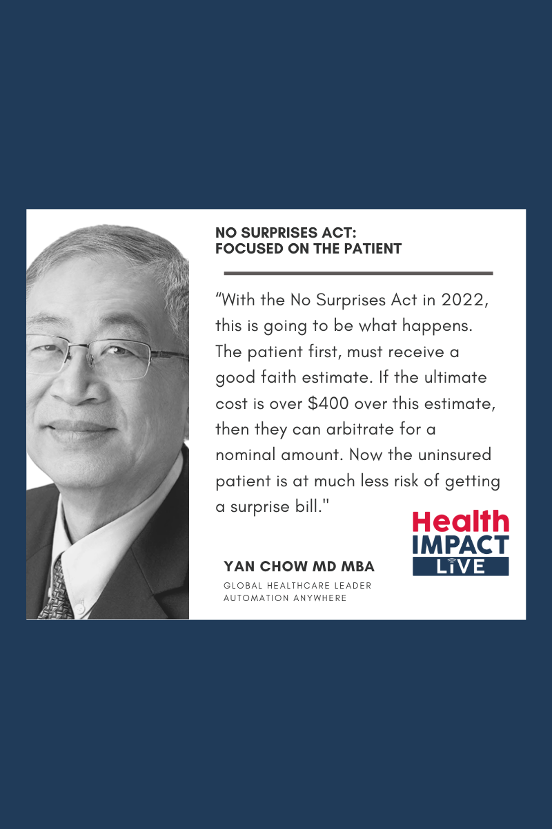 Dr. Chow and Tyler Stowell discussed the motivation for and impact of the No Surprises Act on patients, providers, and plans; how to plan for the specific impacts on health systems revenue management; understanding the dispute resolution process, payment rates and how to negotiate them; how large healthcare organizations are using intelligent automation to meet the Act’s requirements; real-world lessons on implementation: what the results are to date, and what potential opportunities there are to expand upon.